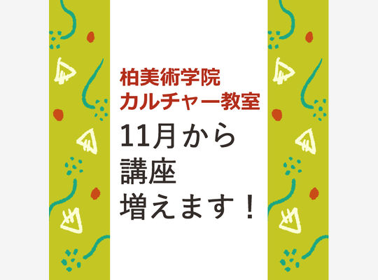 2025/11/12柏美術学院カルチャー教室では、様々な講座をご用意しています。 子ども向け講座「かしびきっず」から、大人の方向けの「カルチャー講座」まで、幅広い年齢の方を対象... -